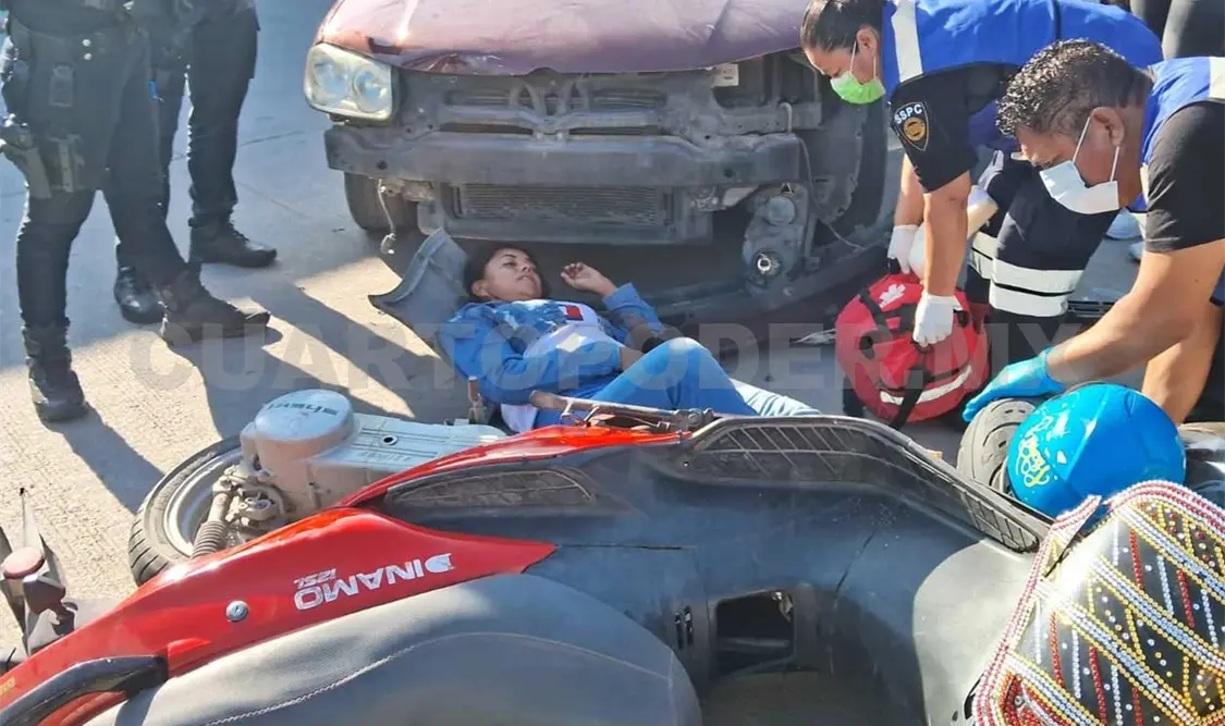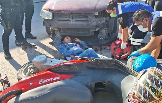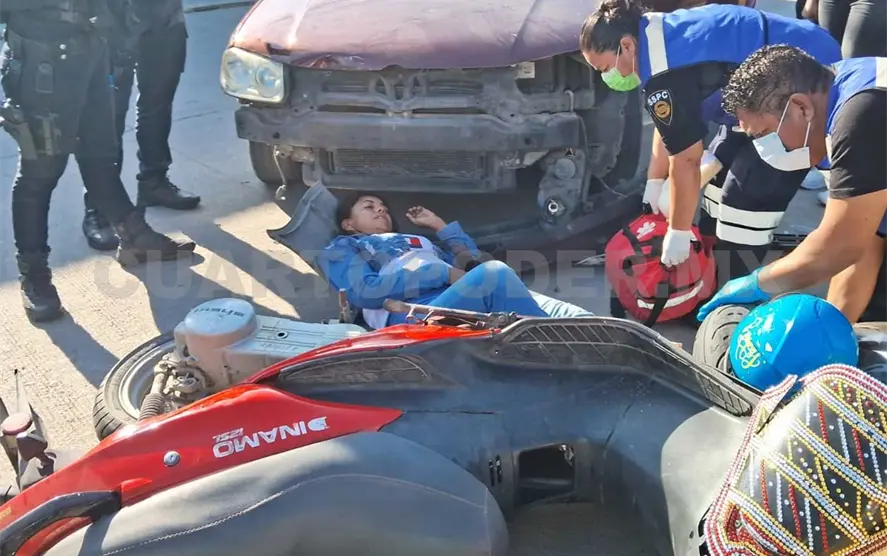 Con graves lesiones terminó una joven luego de sufrir un accidente de tránsito en la calzada Señor del Pozo y esquina con la avenida El Palmar, frente a la colonia Los Pájaros, durante la mañana del sábado en la capital Tuxtla Gutiérrez.