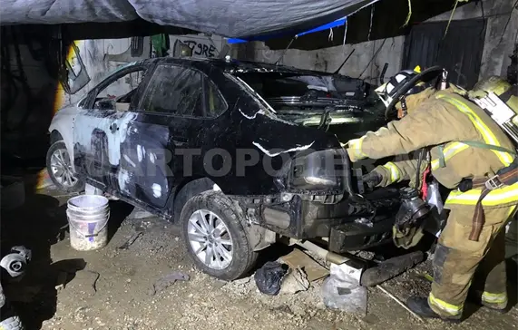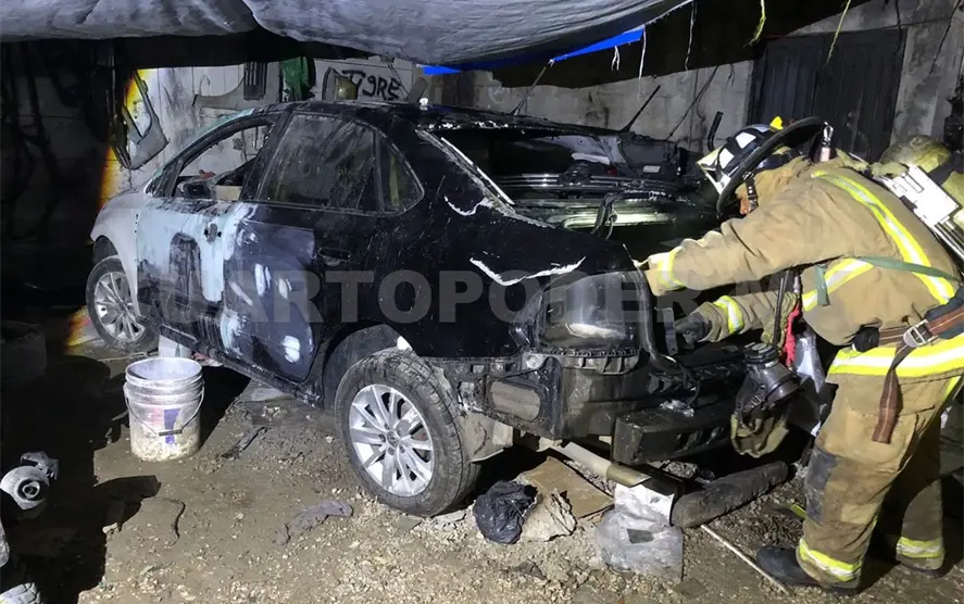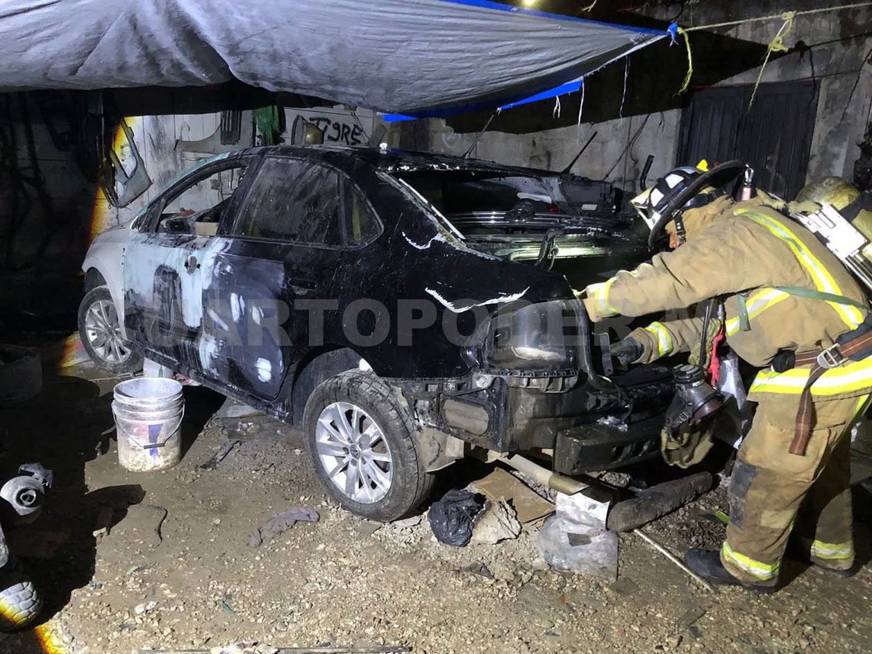 Posteriormente, atendieron un incendio vehicular registrado en la calle Los Sumideros, sin número, y esquina con calle Real del Santuario en el barrio Santuario, donde se llevaron a cabo labores de extinción y aseguramiento del área afectada, la cual fue enfriada para evitar la reignición.
