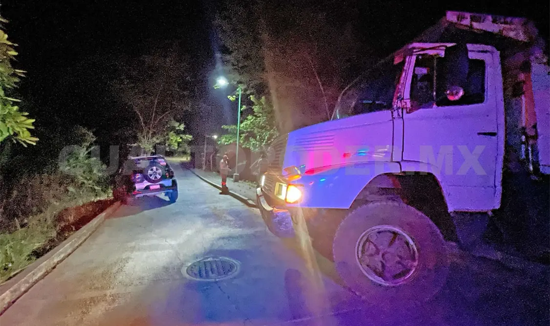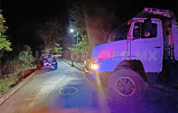 Descendió y fue a buscar un camión volteo de acarreo de material pétreo, supuestamente de su propiedad, con el que quiso jalar la primer unidad, no obstante debido al estado inconveniente en el que se encontraba no coordinaba bien la extracción.