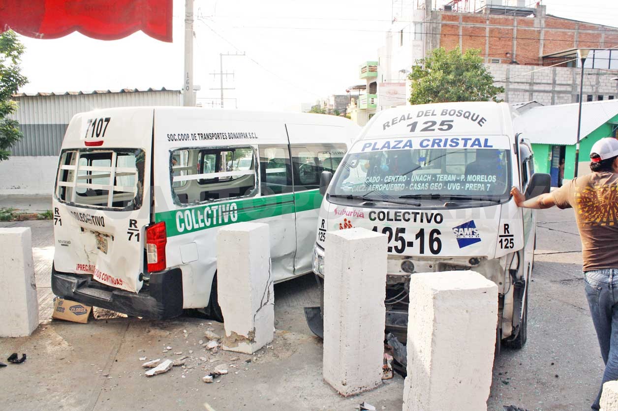 Autoridades de Tránsito y Vialidad Municipal informaron que el accidente fue provocado por corte de circulación, luego de que una de las unidades de pasaje impactara a la otra en la parte lateral y ambas se estrellaron contra unos muros de contención.