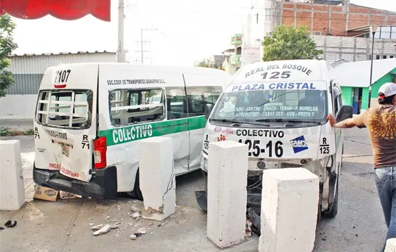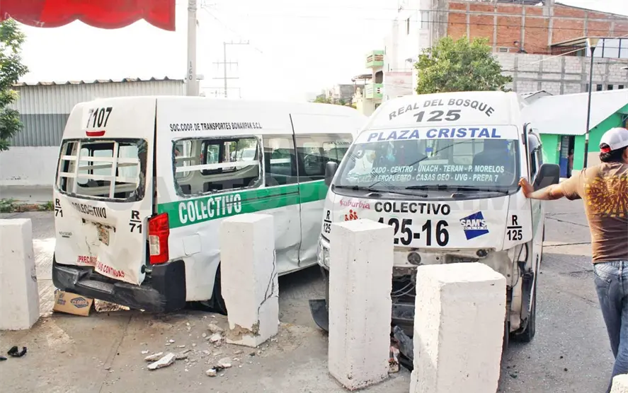 La mañana del viernes dos colectivos de las rutas 125 y 71 chocaron en un cruce de calles de Tuxtla Gutiérrez, dejando un saldo de dos personas golpeadas que fueron valoradas por paramédicos, mientras que las dos unidades fueron llevadas al corralón.