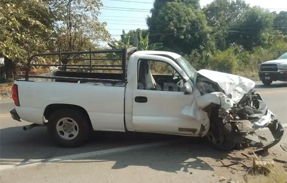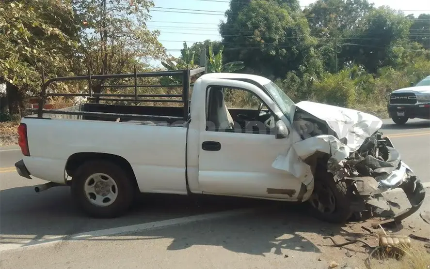 Dos lesionados y daños materiales de alta consideración dejaron como saldo un choque entre dos camionetas pick up en la carretera de Puerto Madero a Tapachula.