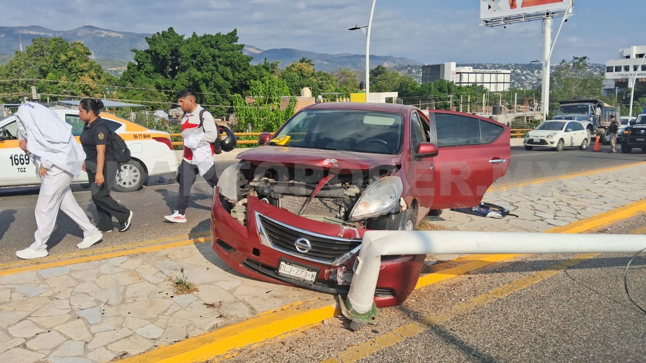 Por el encontronazo, el automóvil particular salió proyectado hacia su costado izquierdo en donde terminó estrellándose contra la base metálica de una luminaria, la cual fue derribada por completo.