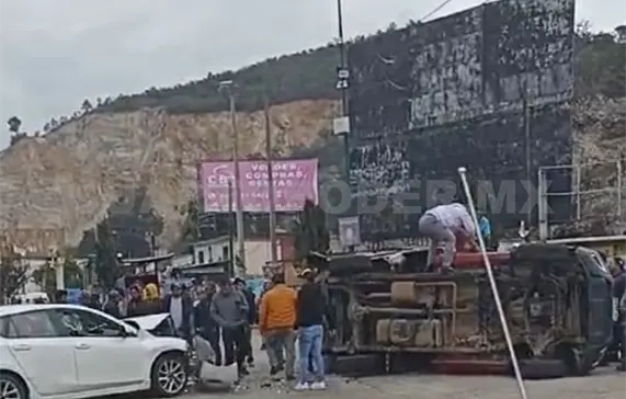 En el accidente participaron dos unidades: una camioneta Nissan Estaquitas de color rojo y un automóvil Mazda de color blanco; del fuerte impacto la primera unidad volcó quedando en medio de la vía.