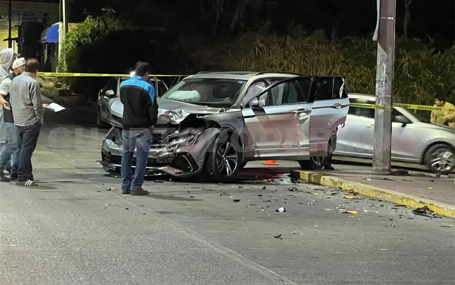 Por ello, colisionó a una camioneta SUV Volkswagen Tiguan, color gris, que se dirigía hacia el sur, para después derribar el poste de metal del semáforo y terminar por incrustarse en un local comercial.