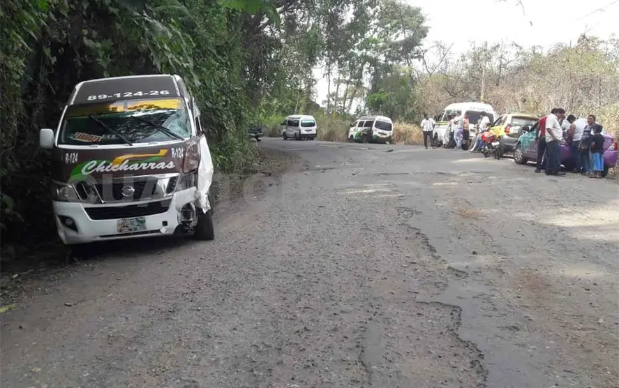El pasado viernes en el tramo Huixtla-Tapachula se registró un aparatoso choque entre combis de la ruta a Escuintla, el cual dejó a 17 personas lesionadas.
