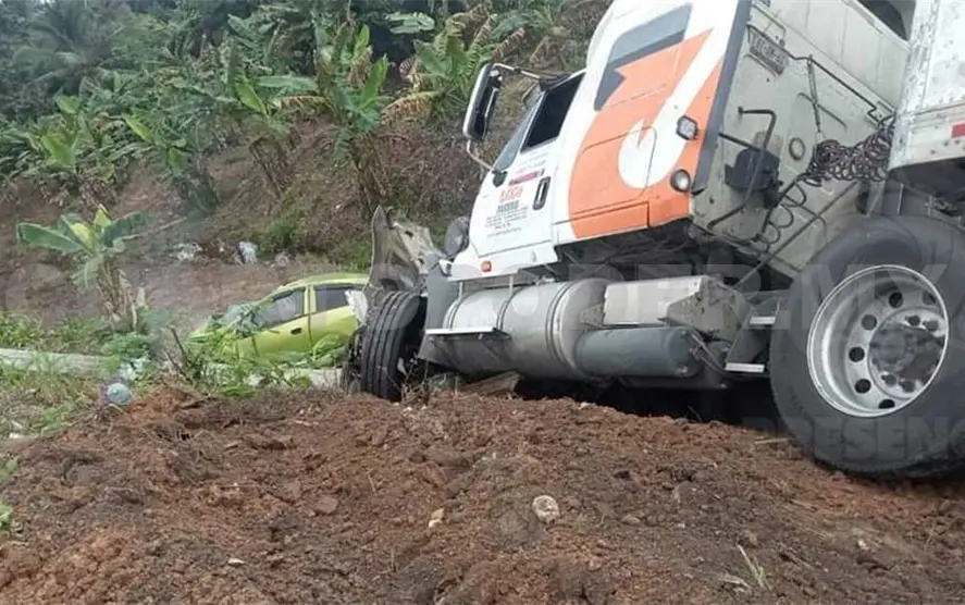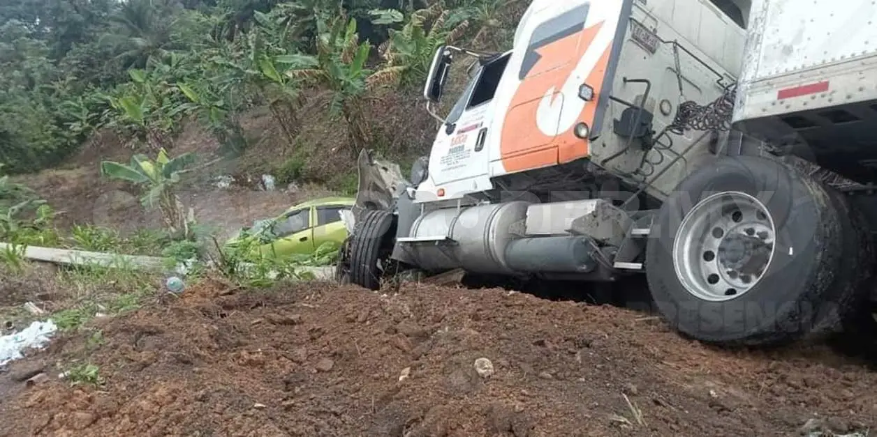 Un tráiler y un automóvil compacto protagonizaron un accidente carretero en el kilómetro 57 de la vía que conecta a Ocozocoautla y Las Choapas, dejando como saldo una persona muerta y múltiples daños materiales.