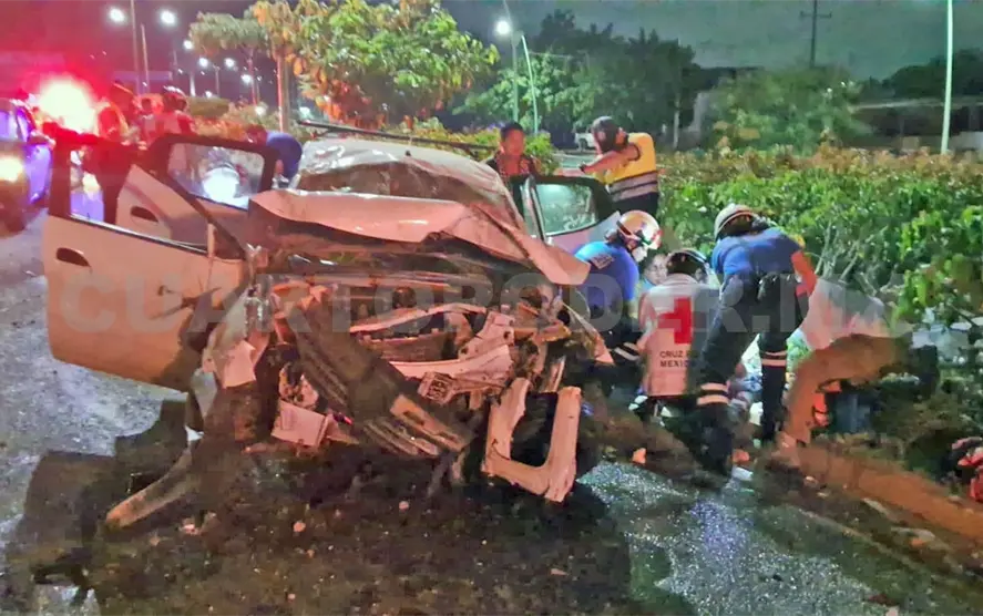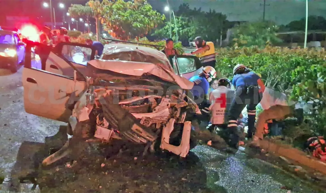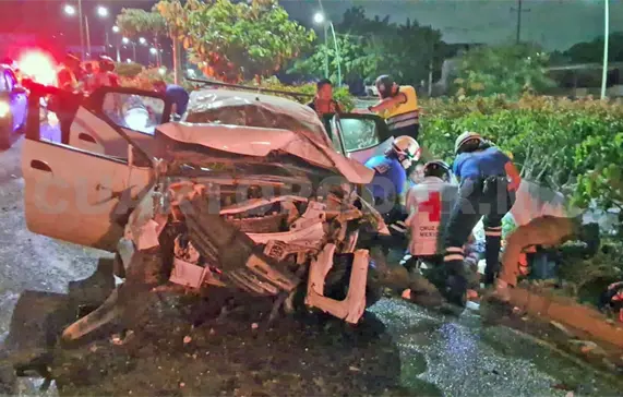 Giró el volante hacia la izquierda en un desesperado intento por evitar una colisión, pero lo que siguió fue una secuencia de impactos contra las jardineras del andén central. El vehículo dio al menos dos vueltas, quedando destrozado sobre el pavimento.