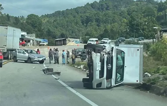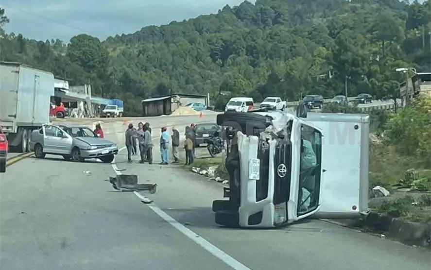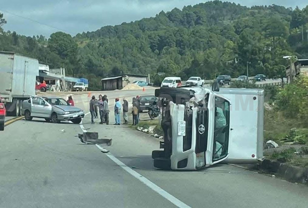 El percance se registró a la altura del kilómetro 40, cerca de la entrada a la comunidad de Zacualpa, municipio de San Cristóbal. Una camioneta quedó volcada a un costado dejando daños a la vía.