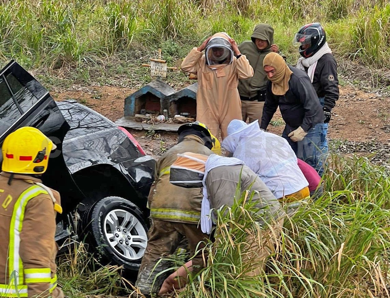Sin embargo, las labores de rescate se vieron complicadas debido a que, luego del percance, un enjambre de abejas atacó a los pasajeros y a quienes intentaban auxiliarlos.