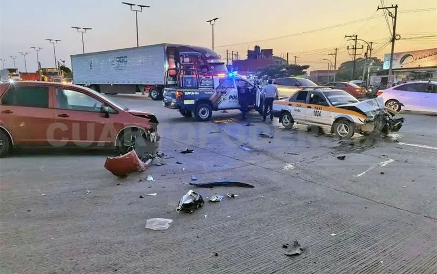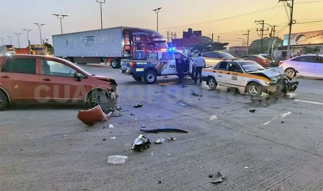 Los reportes de las autoridades indican que el conductor de un taxi con número económico 1004 pretendió incorporarse hacia el libramiento Sur, sin las debidas precauciones, por lo que impactó a una camioneta Jeep Grand Cherokee color negro.
