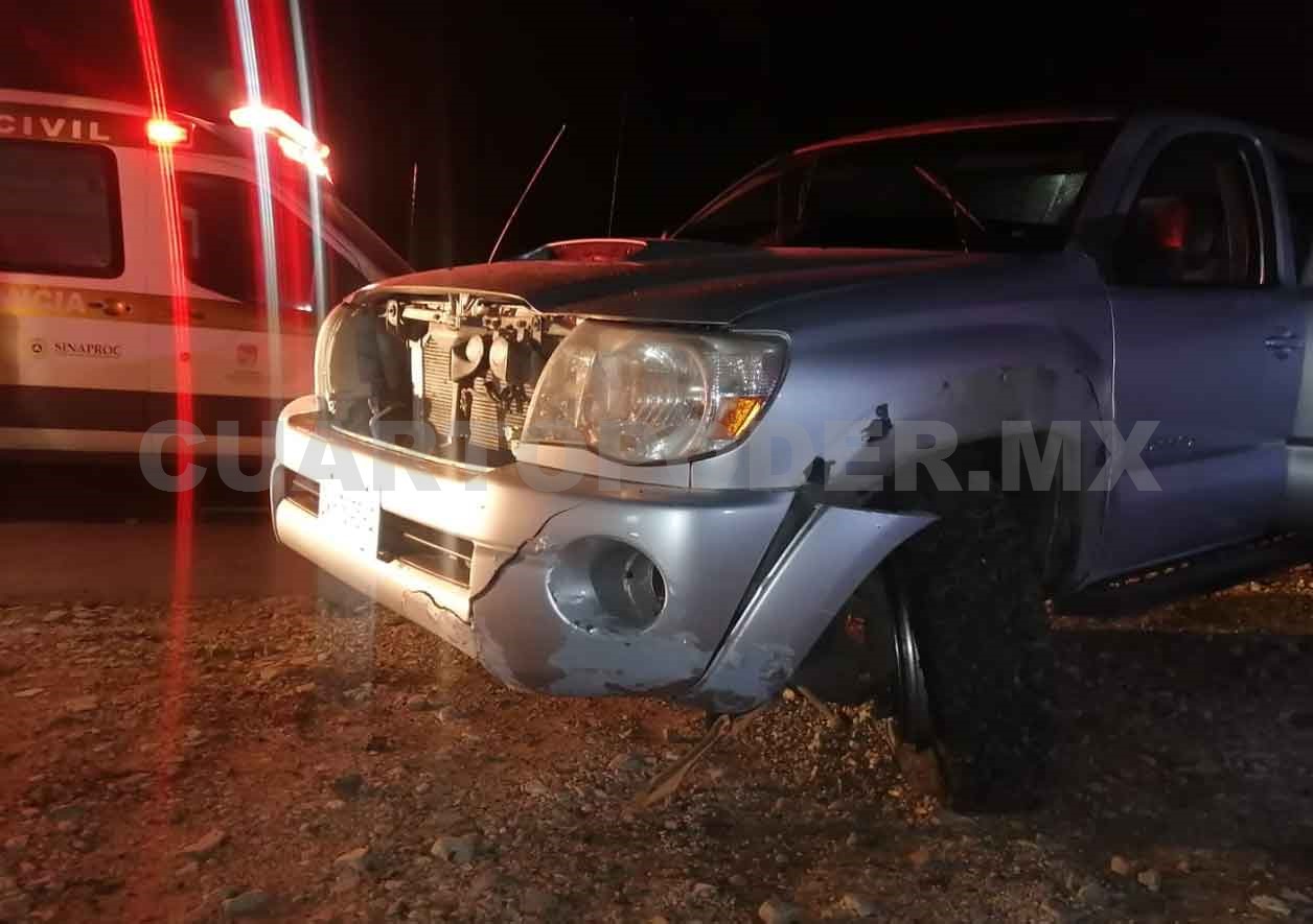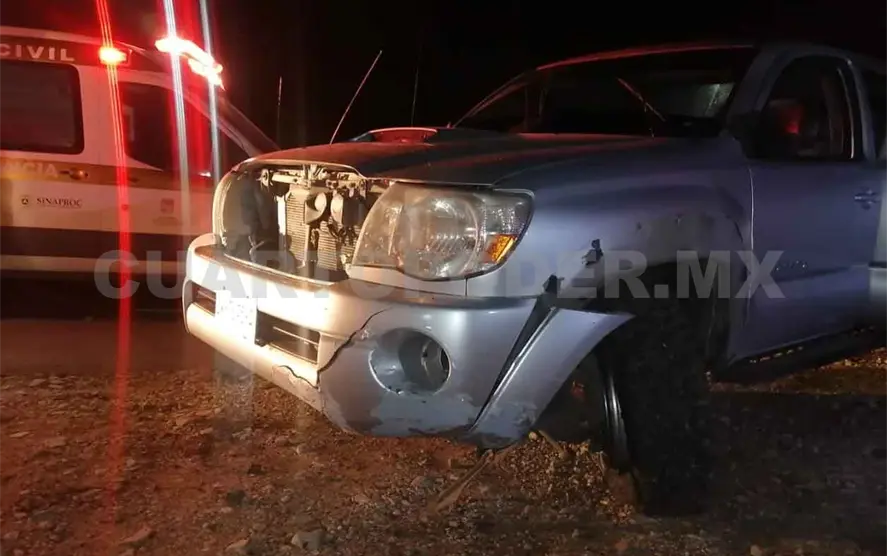 Ahí encontraron una camioneta marca Toyota tipo Tacoma, color gris, con placas de circulación CV-7645-A del estado de Chiapas, cuyo conductor recibió los servicios prehospitalarios ya que presentaba una herida profunda en la frente.