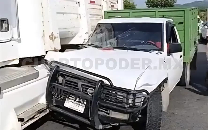 En la misma dirección se desplazaba un camión de acarreo de material pétreo que detuvo su marcha al observar a la camioneta, que se había impactado en el costado izquierdo.