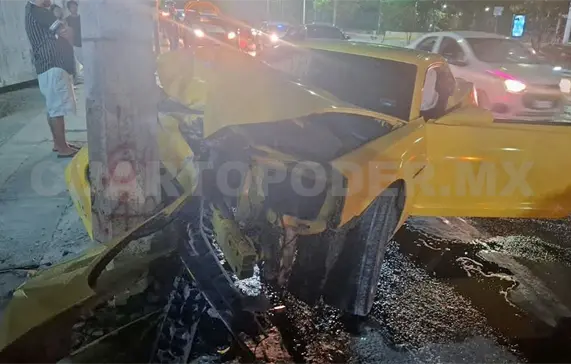 Sin embargo, el exceso de velocidad aunado a una mala maniobra, hizo que el automovilista perdiera el control del volante y finalmente se estrellara contra un poste de concreto, propiedad de la Comisión Federal de Electricidad ( CFE).