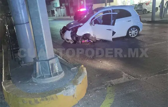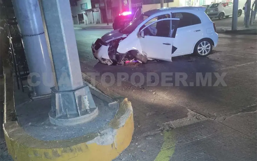 El reporte fue hecho alrededor de las 02:05 horas, cuando un automóvil Nissan, tipo March, en color blanco, modelo 2018, placas de circulación DSN-394-A del estado de Chiapas, se desplazaba de poniente a oriente, sin embargo, al parecer el conductor perdió el control del volante derivado del exceso de velocidad.