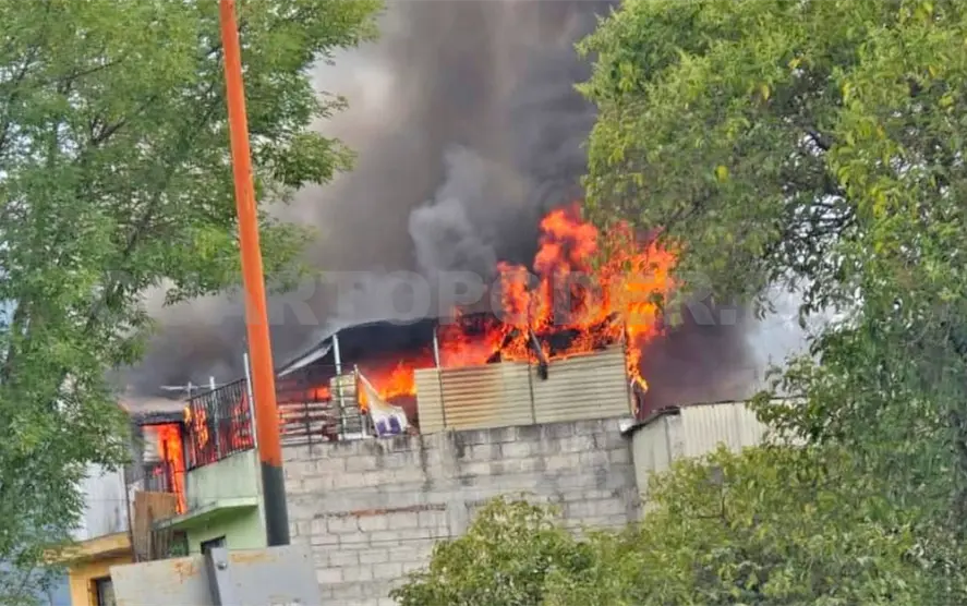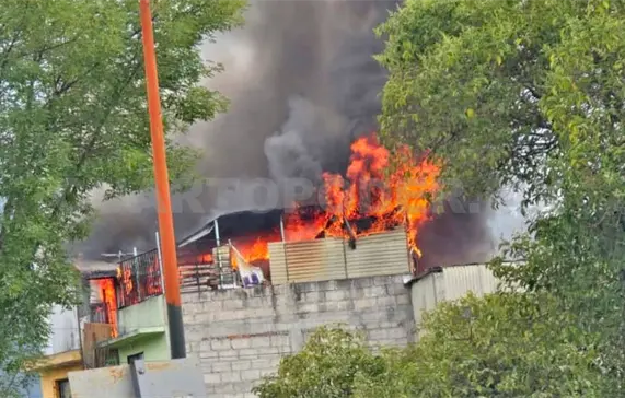 El fuego se registró en el tercer piso del inmueble, el cual funcionaba como cocina de leña, construido con materiales rústicos como madera y lámina, lo que facilitó la propagación del fuego.