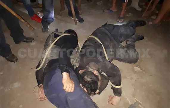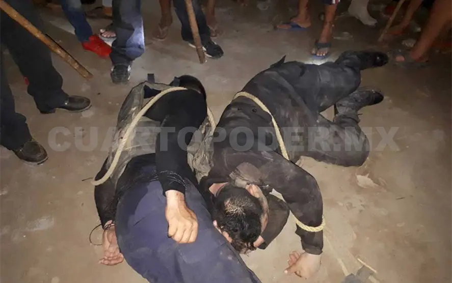 Ante ello, habitantes de esa comunidad rodearon a la patrulla con número económico PP-270 y retuvieron a los dos policías a los que despojaron de sus armas de cargo, -dos pistolas calibre .9 milímetros y un arma larga-, los bajaron, golpearon y tiraron al suelo en donde fueron atados con lazos, rociándolos de combustible y amenazándolos con prenderles fuego.