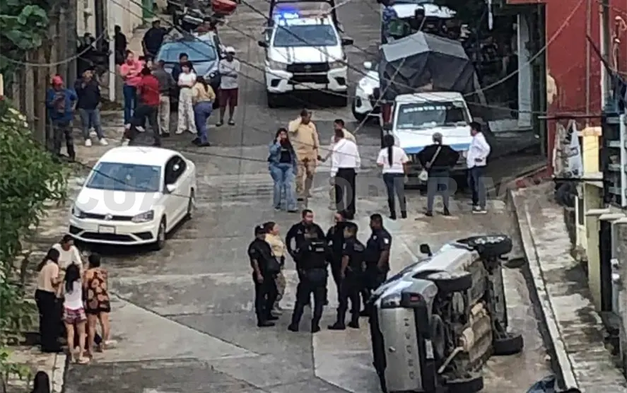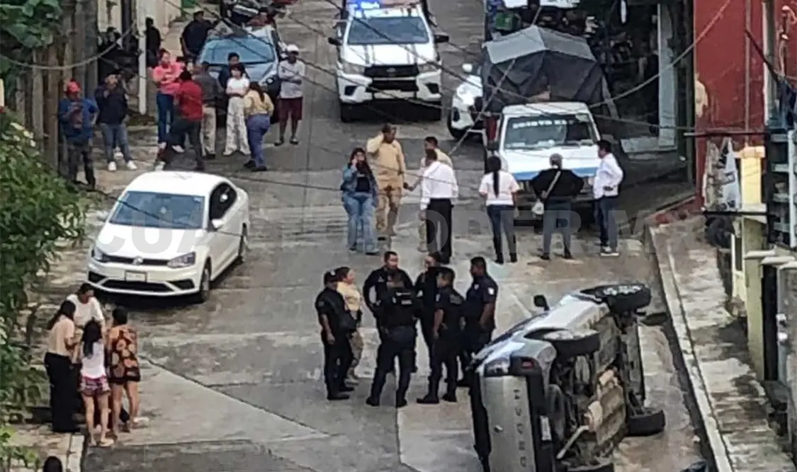 Un aparatoso accidente vehicular se registró durante la tarde-noche del jueves en la ciudad de Palenque, luego de que el conductor de una camioneta se desplazara a exceso de velocidad por calles del barrio San José, provocando una carambola que terminó en volcadura.