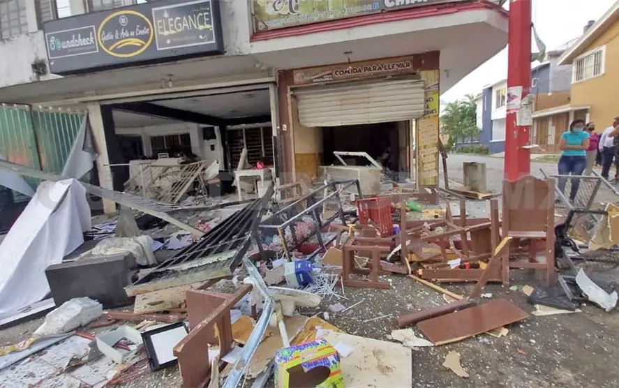 En el lugar, los “tragahumo” señalaron que una aparente fuga de gas en uno de los cilindros originó la explosión, haciendo que las cortinas de acero salieran proyectadas en todas direcciones, así como sillas, mesas, televisores y otros objetos que se encontraban al interior del inmueble.
