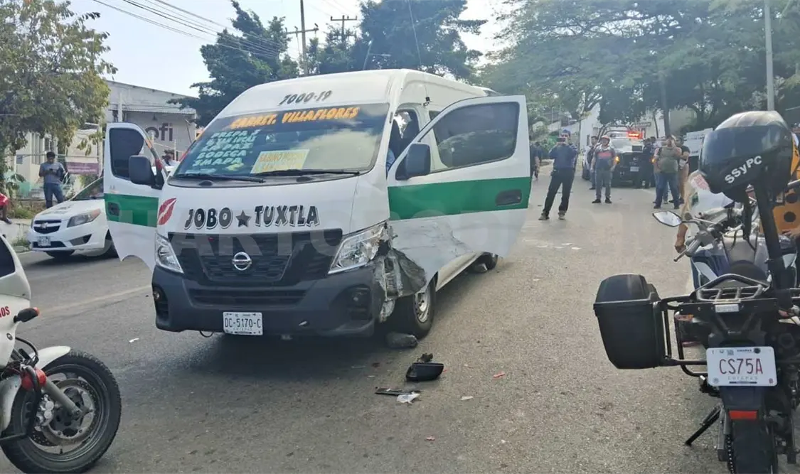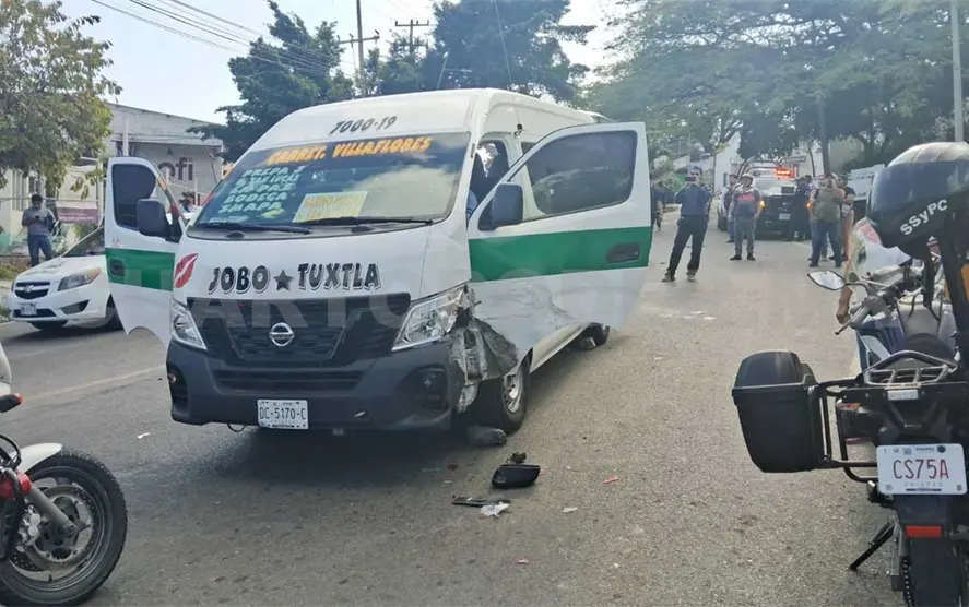 Un aparatoso accidente de tránsito entre una pipa y un transporte público en modalidad de colectivo de la ruta El Jobo-Tuxtla Gutiérrez, dejó como saldo a 12 personas lesionadas y daños materiales valuados por miles de pesos durante la mañana de ayer en el tramo a Villaflores, a pocos metros del libramiento Sur, en la demarcación capitalina.
