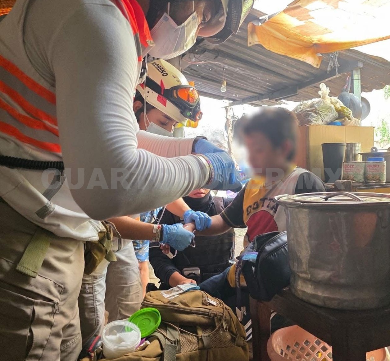 Elementos de Protección Civil acudieron hasta un domicilio ubicado en la 3.ª Poniente y calle Central, en la colonia San José Terán, donde brindaron atención prehospitalaria a los afectados.