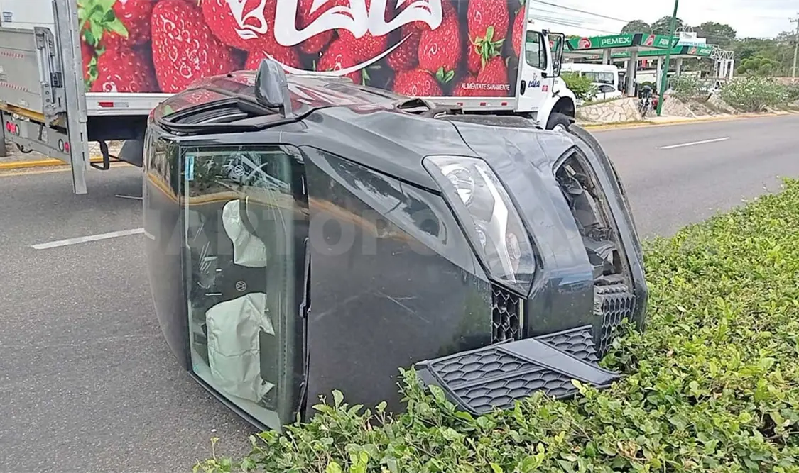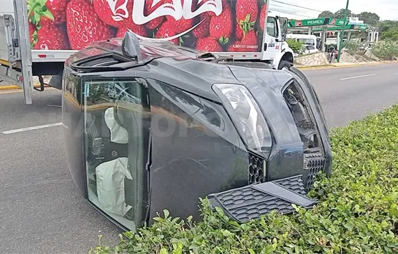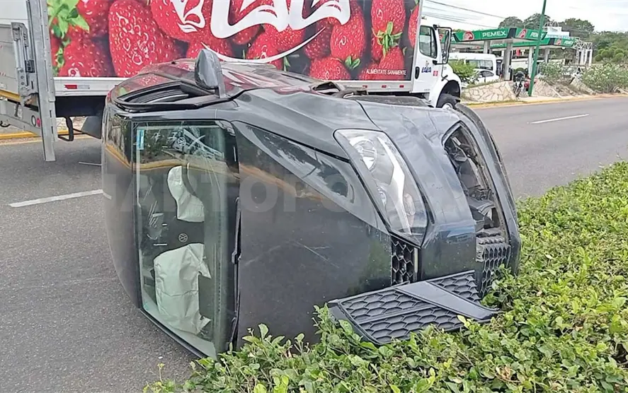 Sin embargo, el conductor manejaba presuntamente a exceso de velocidad, por lo que perdió el control del volante y se estrelló contra el borde del andén central, finalmente volcó sobre la vía.