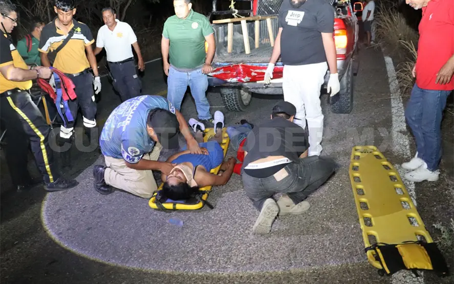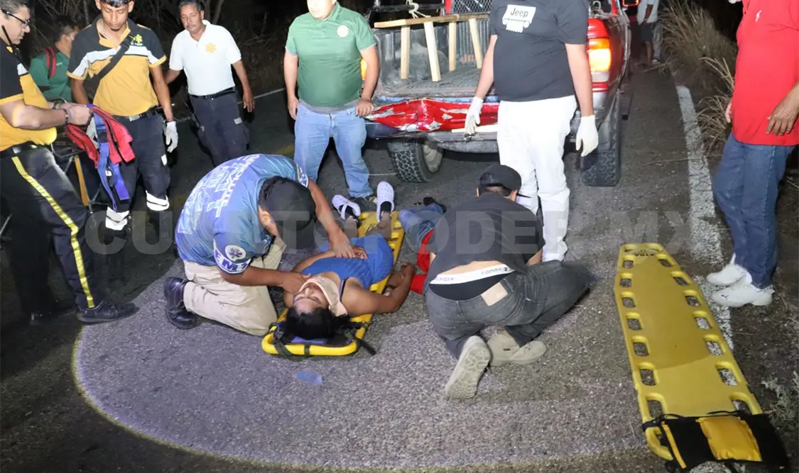 Minutos después de las 22:00 horas fueron solicitadas las unidades médicas al tramo carretero con dirección a las comunidades de la sierra, kilómetros después del basurero, donde señalaban que habían dos personas sumamente lesionadas.