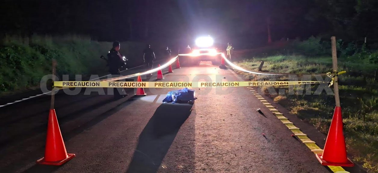 Tendido sobre la cinta asfáltica quedó el cuerpo de la persona, misma que no ha sido identificada, mientras que a unos metros de esta una motocicleta Italika FT150, color blanco.