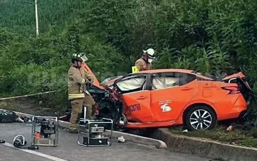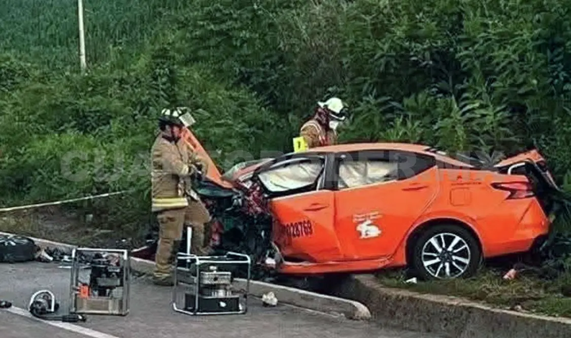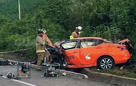 Testigos que circulaban por la zona describieron la escena como sumamente desgarradora: el taxi, con número económico SCT-CC028769, quedó completamente destrozado, mientras que el chofer y el pasajero fallecieron en el interior de la unidad. La colisión fue frontalmente, al parecer por una invasión de carril.