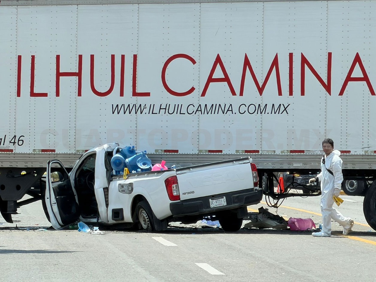 Los hechos ocurrieron a la altura de las bodegas de la empresa comercial Sahuayo, cuando un tráiler con cabezal rojo y caja seca de color blanco, con razón social Ilhuil Camina, hizo corte de circulación sobre la carretera impactándose una camioneta Nissan NP300, dedicada a la distribución de agua.