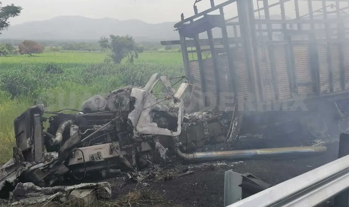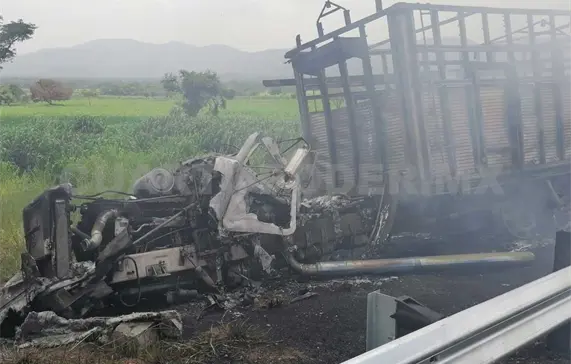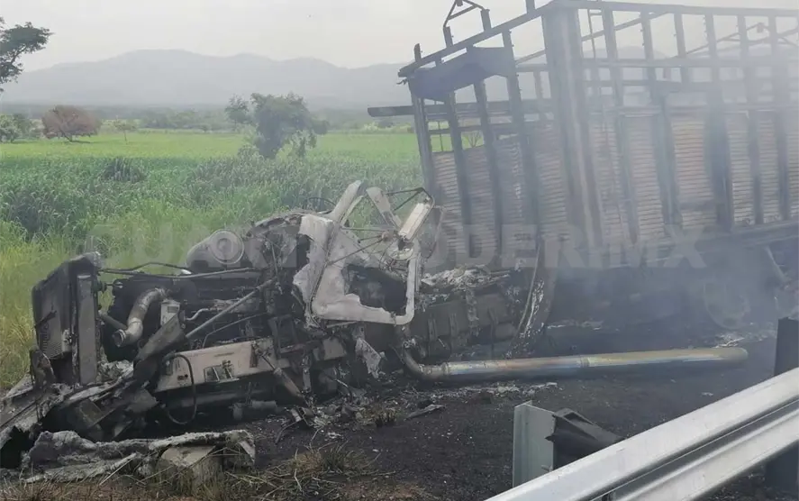 Informes preliminares dieron a conocer que alrededor de las 13:20 horas el automóvil marca Chevrolet tipo Sonic, con placas WMT586-B del estado de Tabasco, quedó destrozado al impactar contra un camión de tres toneladas, con redilas ganaderas, el cual posteriormente se incendió.