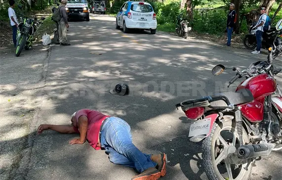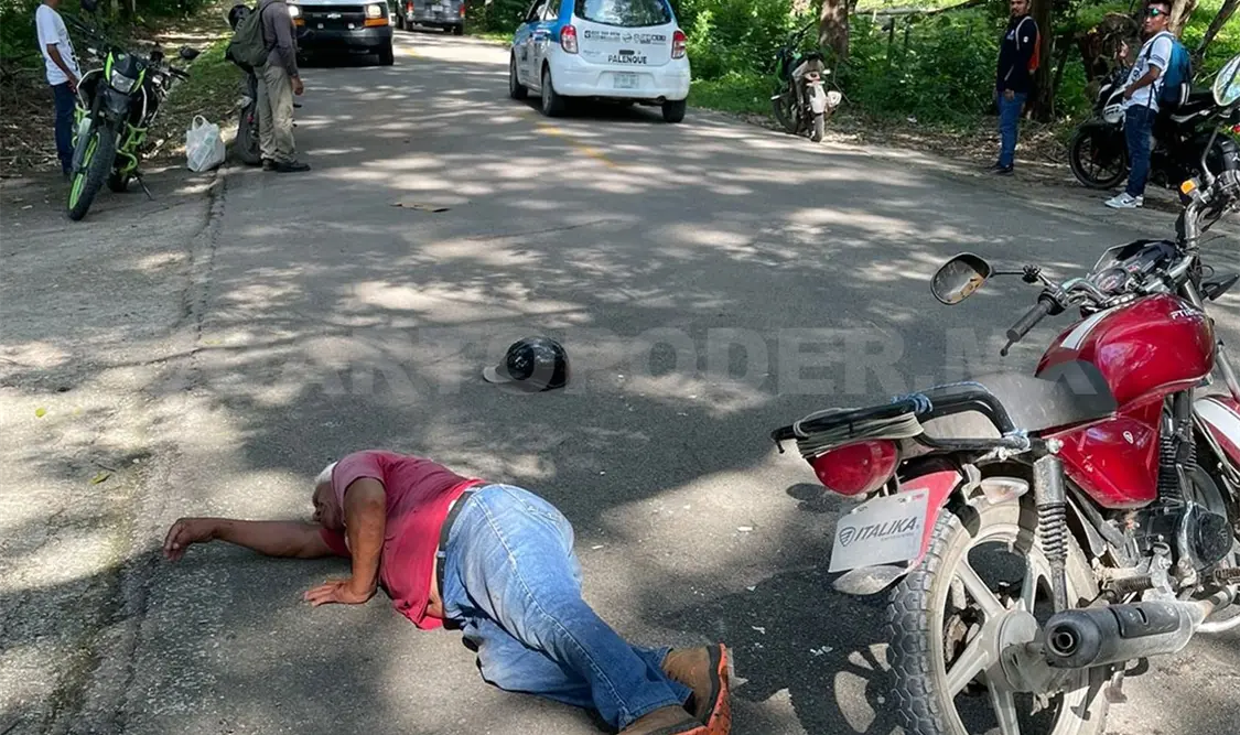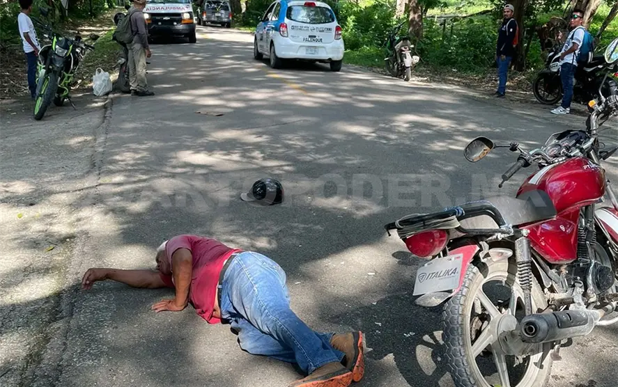 El motociclista quedó tirado sobre la cinta asfáltica, el cual presentaba golpes contusos, lesiones abrasivas y posibles fracturas, por lo que fue trasladado al hospital general de Palenque.