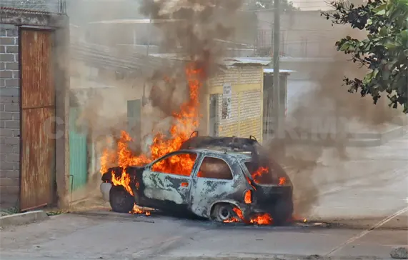 Un automóvil compacto quedó reducido a chatarra por las llamas, la tarde del martes al norte del municipio de Cintalapa, lo cual dejó solo daños materiales. Todo parece indicar que fue debido a una falla en el sistema eléctrico.