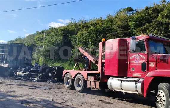 Finalmente, personal de la Guardia Nacional (GN) arribó para corroborar la información, para después solicitar el servicio de plataforma que retiraría del camino los restos de la pesada unidad hacia el corralón, y así darle seguimiento al incendio, que por fortuna no dejó lesionados.