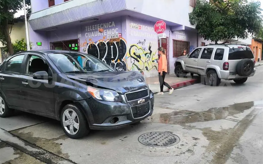 Mientras que el otro vehículo, un Chevrolet tipo Aveo, color azul, engomado DSN6123 del estado de Chiapas, conducido por una dama de oriente a poniente en avenida, al parecer no respetó el señalamiento y provocó el aparatoso percance.