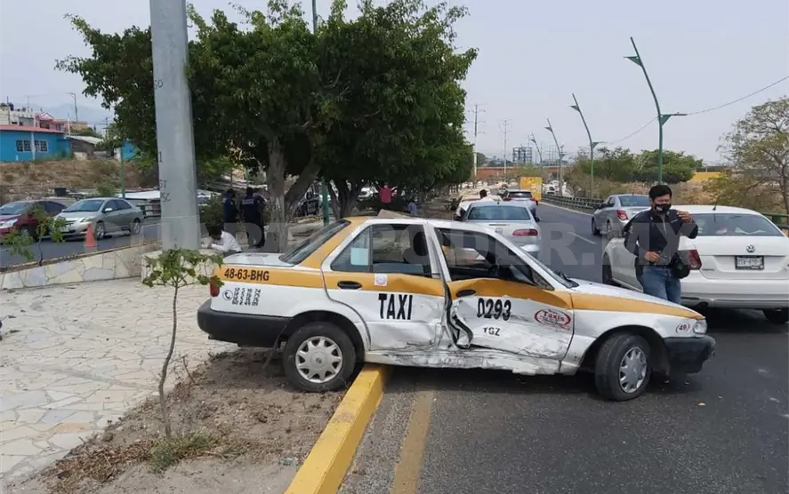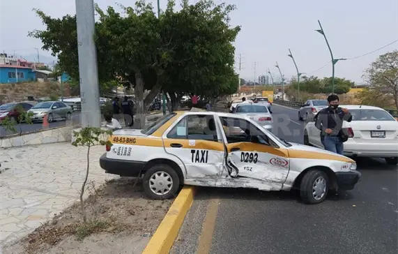 De acuerdo con información obtenida, el reporte fue hecho alrededor de las 14:10 horas, cuando un Nissan tipo Tsuru, en modalidad de taxi, número económico 0293 y placas de circulación 4863-BHG, fue impactado por su similar pero con número económico DLP-600-B y láminas NP-0621.