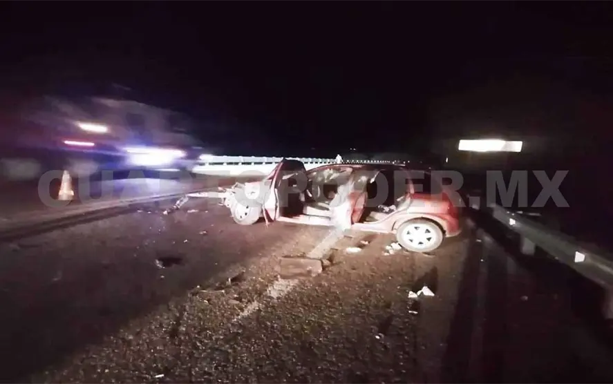 Sin embargo, al pasar por el kilómetro referido –según el chofer- otro vehículo los sacó de la carretera, provocado que se impactaran contra una banda metálica de la barrera de contención.