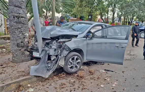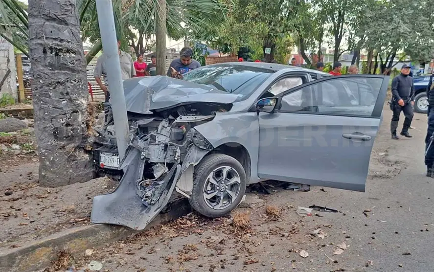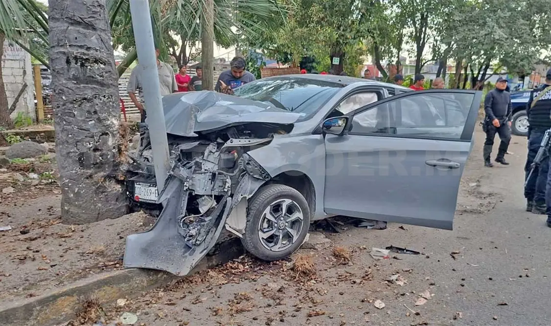 Al menos cinco personas resultaron lesionadas, entre ellas un menor de edad, al impactarse el vehículo en que se desplazaban contra un poste de alumbrado público y una palmera, esto sobre la carretera hacia el antiguo aeropuerto durante la tarde del jueves en la ciudad de Tapachula.