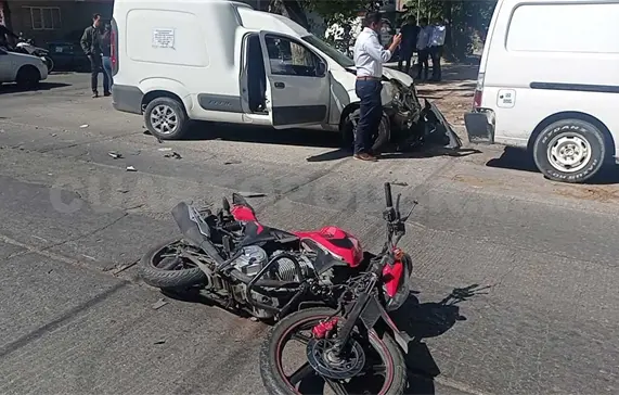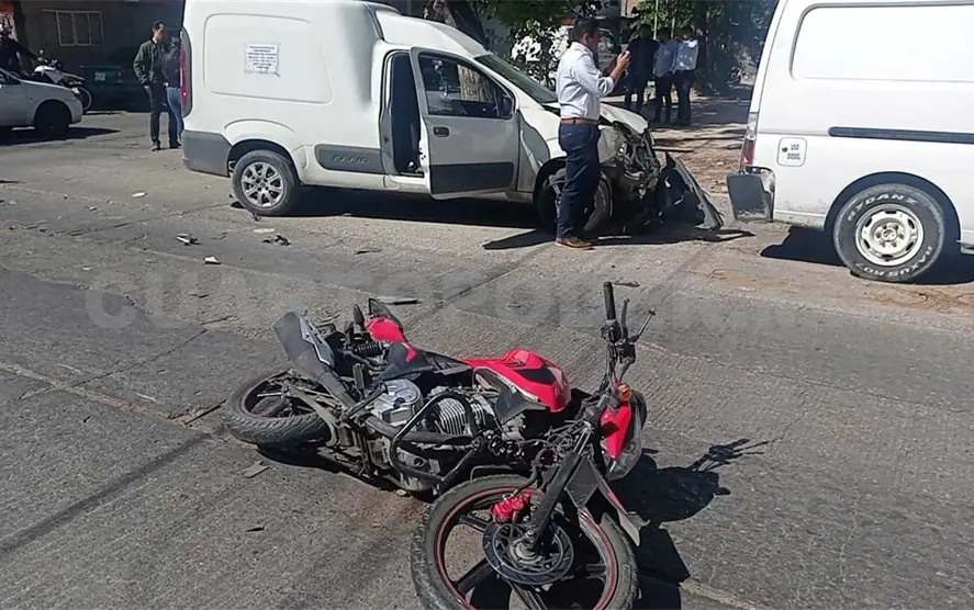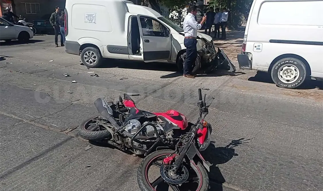 El hecho se registró alrededor de las 10:20 horas, cuando una unidad motriz terminó estrellándose contra un joven motociclista al no respetar ambos el señalamiento vial de “Uno x Uno”.