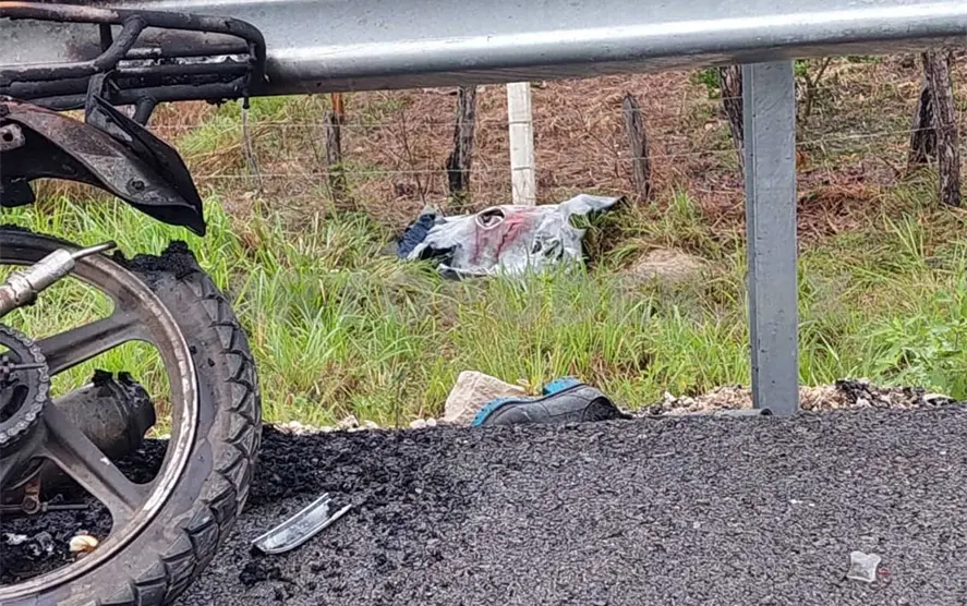 A escasos metros del Cereso 17 El Bambú fue donde se observó una camioneta Frison T8, color blanco, con placas de circulación VN-902-B de Tabasco, y una motocicleta tirada e incendiada, además del cuerpo de un hombre fuera de la vía, pegado al cerco perimetral de una propiedad.