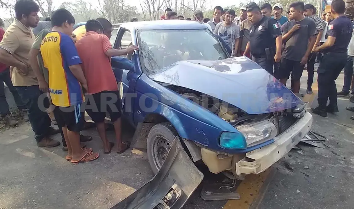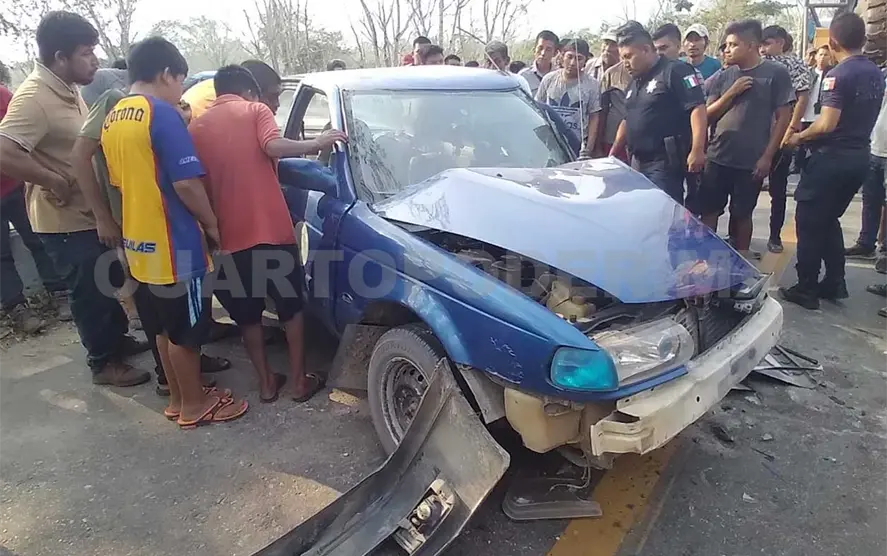 Ahí se vieron involucrados un automóvil Nissan Tsuru de color azul, con láminas de circulación UTD-480-H, cuyo conductor fue identificado como Gabino López Díaz, de 34 años de edad, con domicilio en el ejido Nuevo Mundo, municipio de Salto de Agua.
