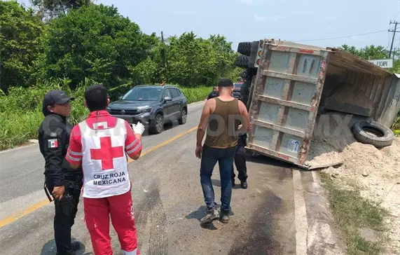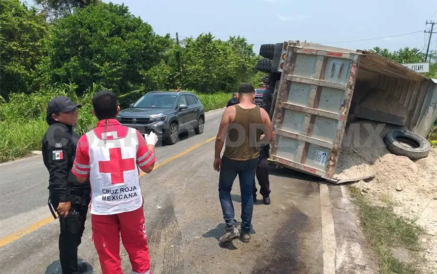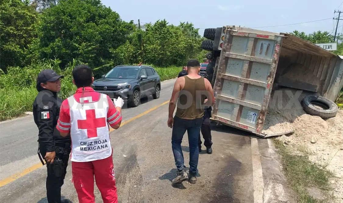 Al descender se percató que los frenos no le respondieron y trató a toda costa de evitar una tragedia, por lo que decidió orillarse a la cuneta y volcó sobre el costado derecho, dejando daños materiales y la pérdida de la carga.