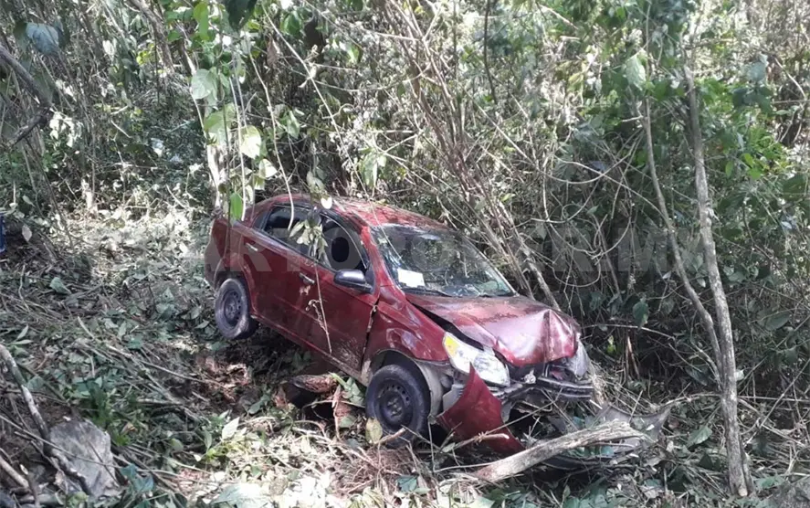 Testigos refirieron que el conductor, quien dijo llamarse Mario López de la Cruz, originario del municipio de San Juan Chamula, se dirigía a Palenque y logró salir ileso luego de que su vehículo derrapó en la zona de curvas peligrosas y abandonó la vía, terminando a unos 20 metros en una zona de vegetación mediana.