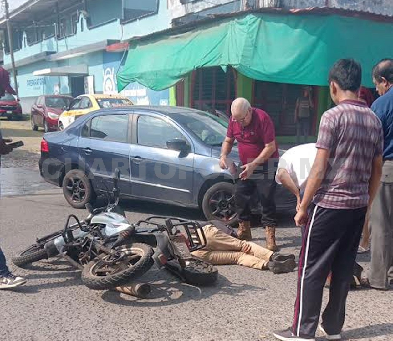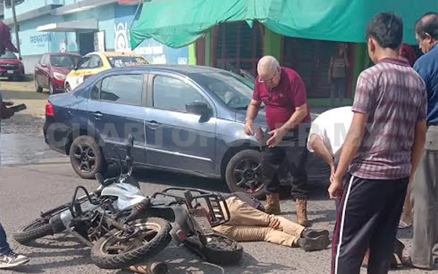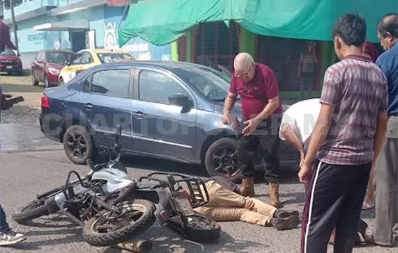 Dos personas, entre ellos un colombiano, resultaron con lesiones leves tras ser impactada la motocicleta en que se desplazaban por un vehículo, sobre la avenida Las Palmas a la altura de la calle Framboyanes, en la colonia Los Laureles, al sur-oriente de Tapachula.