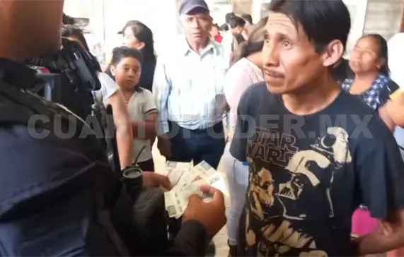 Sin embargo, al revisarlo de manera minuciosa se percataron que estos eran falsos, por lo que de manera unida los comerciantes se reunieron y retuvieron al estafador, solicitando el apoyo de las autoridades para ser entregado y se lleven a cabo las pesquisas correspondientes.
