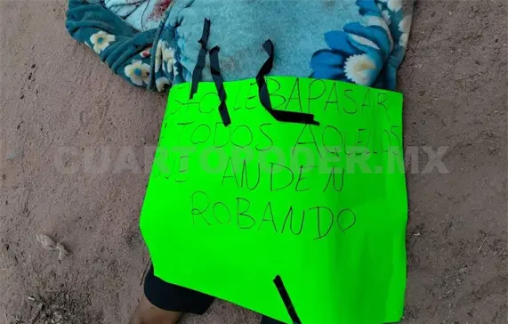 El individuo presentaba impactos de bala y tenía una cartulina con un mensaje amenazador sobre que esto le va a pasar a quienes se dedican a robar.