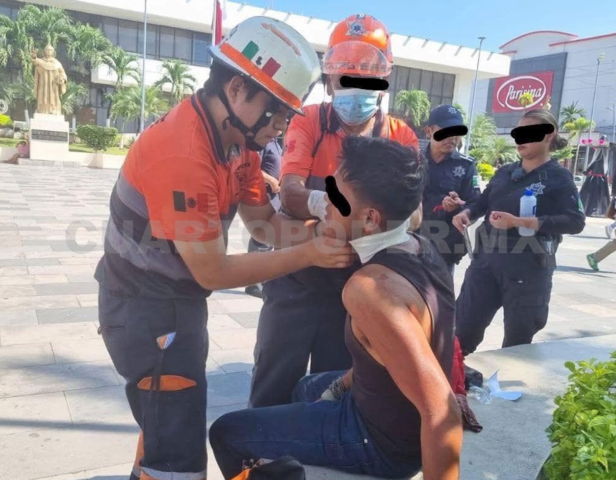 Con dos heridas provocadas por un arma punzocortante resultó un joven que fue atacado mientras se encontraba en el parque central Miguel Hidalgo, a unos metros del Palacio Municipal de Tapachula.
