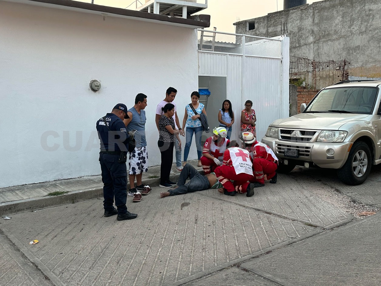 Paramédicos de la Cruz Roja tuvieron conocimiento de un accidente en el cual un hombre de más de 50 años resultó con aparentes fracturas por el impacto de la caída desde casi 3 metros de altura.