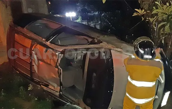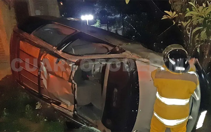 En el cruce perdió el control de la unidad y se salió de la vía, cayendo a un barranco de al menos siete metros, dando varias volteretas hasta quedar volcado sobre el costado derecho.