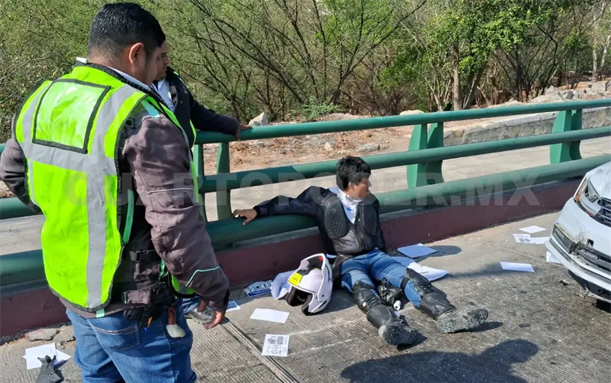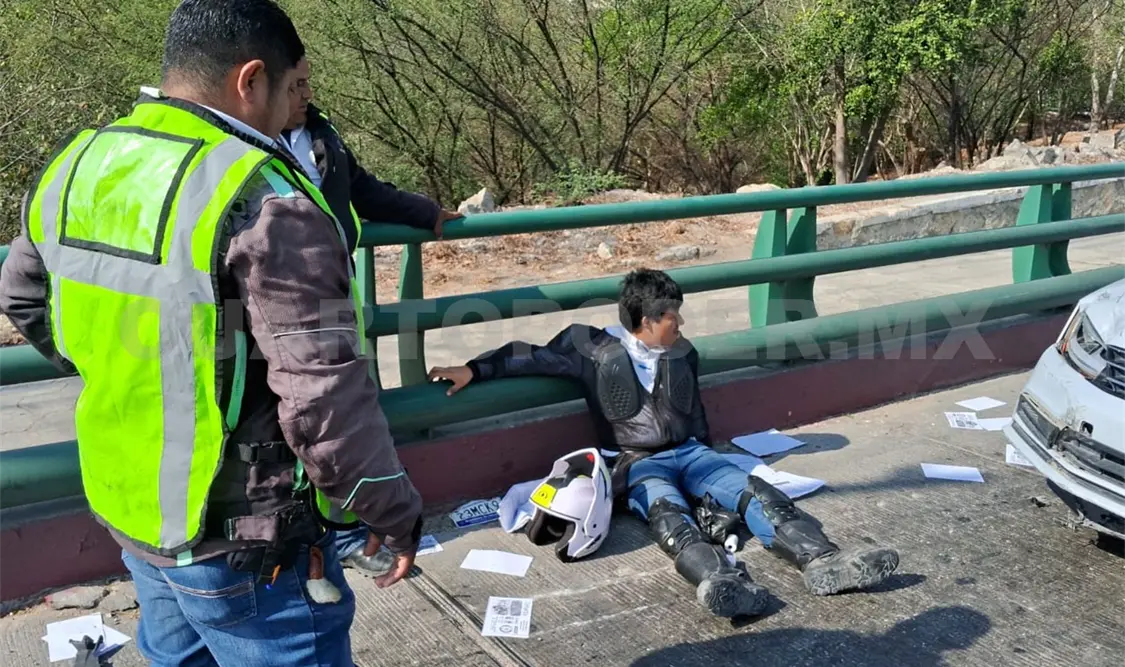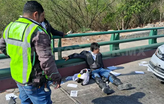 Con múltiples lesiones en las extremidades terminó un joven motociclista luego de sufrir un aparatoso accidente de tránsito en el libramiento Sur a la altura del obelisco La Antorcha, en la capital del estado.